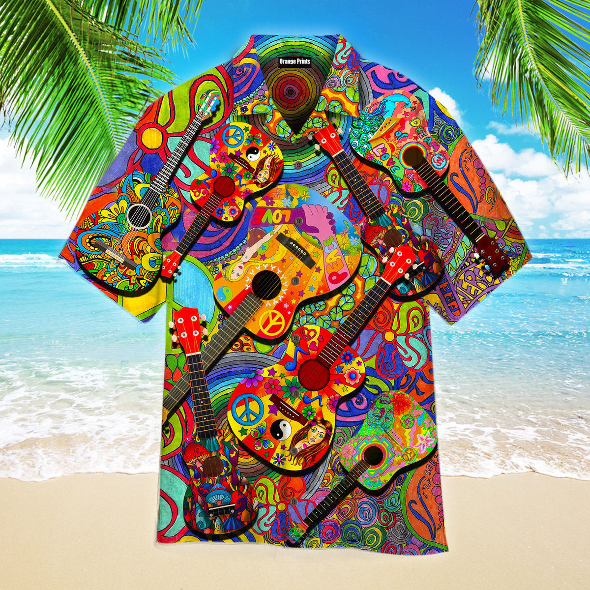 Colorful Guitar Hippie Love Music Hawaiian Shirt