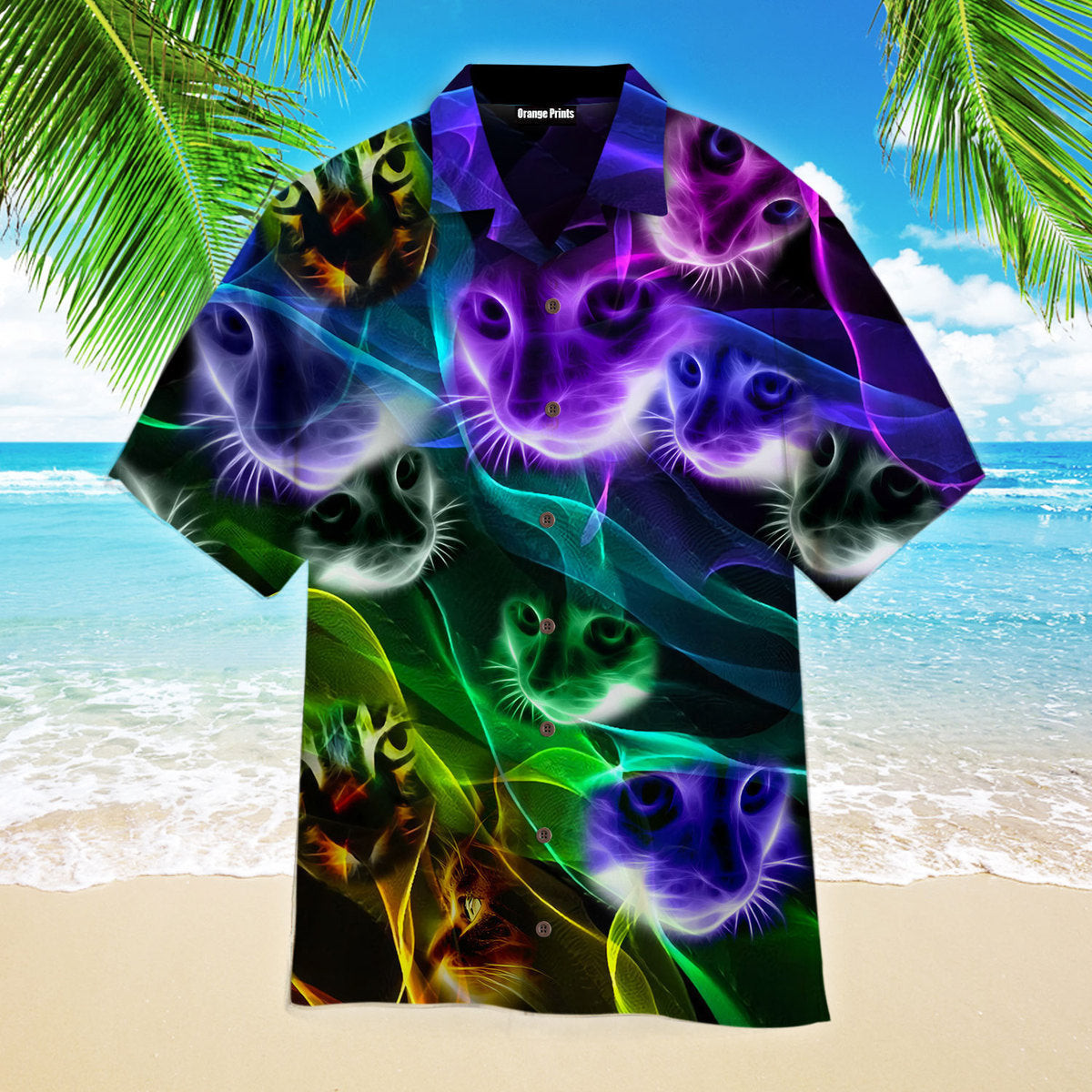 Colorful Hippie Van And Cat Hawaiian Shirt