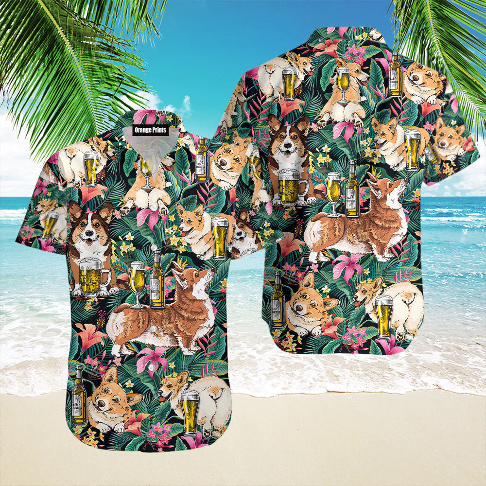 Corgi Dog Dog Drink Beer Hawaiian Shirt
