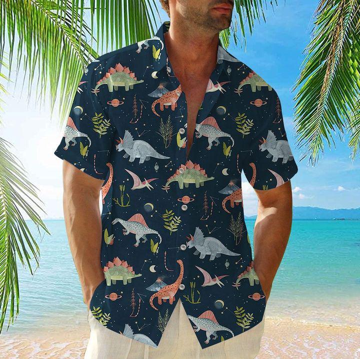 Dinosaur Cosmic Night Tropical Hawaiian Shirt