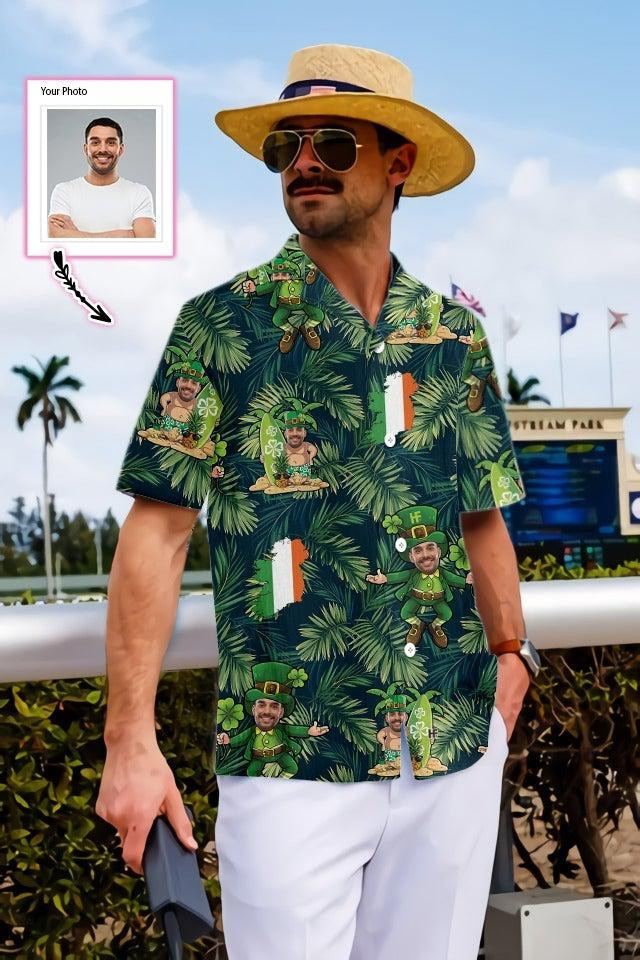 Face Leprechaun Irish Proud Custom Photo Hawaiian Shirt