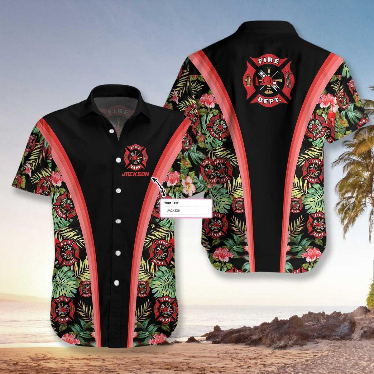 Firefighterfire Truck Hibiscus Hawaiian Shirt