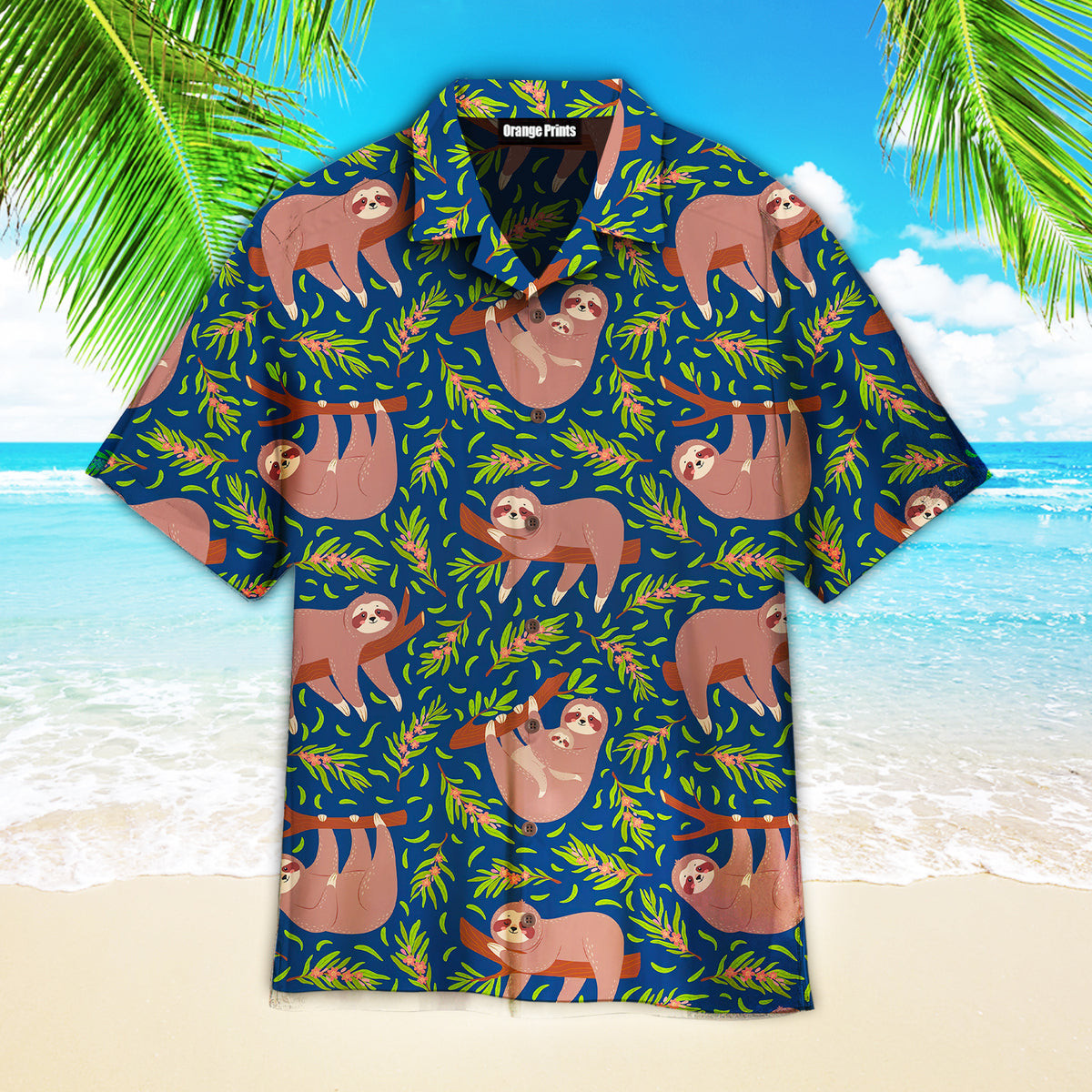 Funny Lazy Sloths On Branch Seamless Hawaiian Shirt