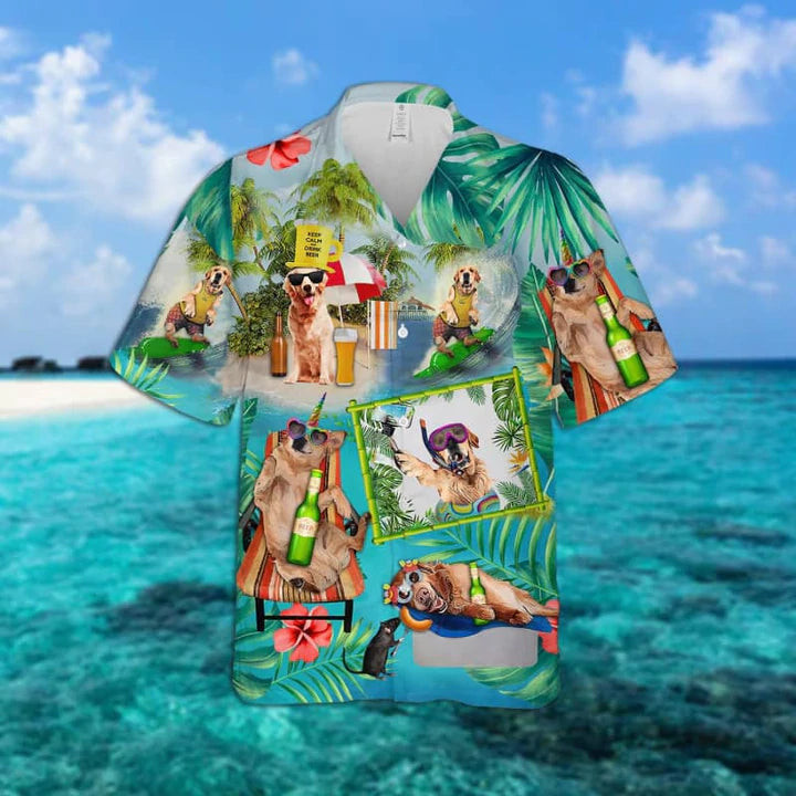 Golden Retriever Dog Lovers Tropical Leaves Hawaiian Shirt