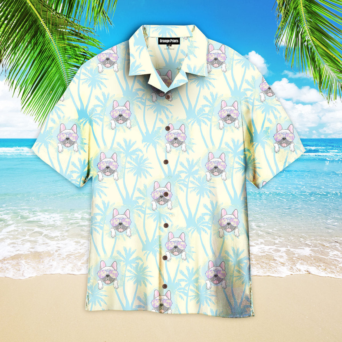 Happy Bull Dog With Tropical Hawaiian Shirt