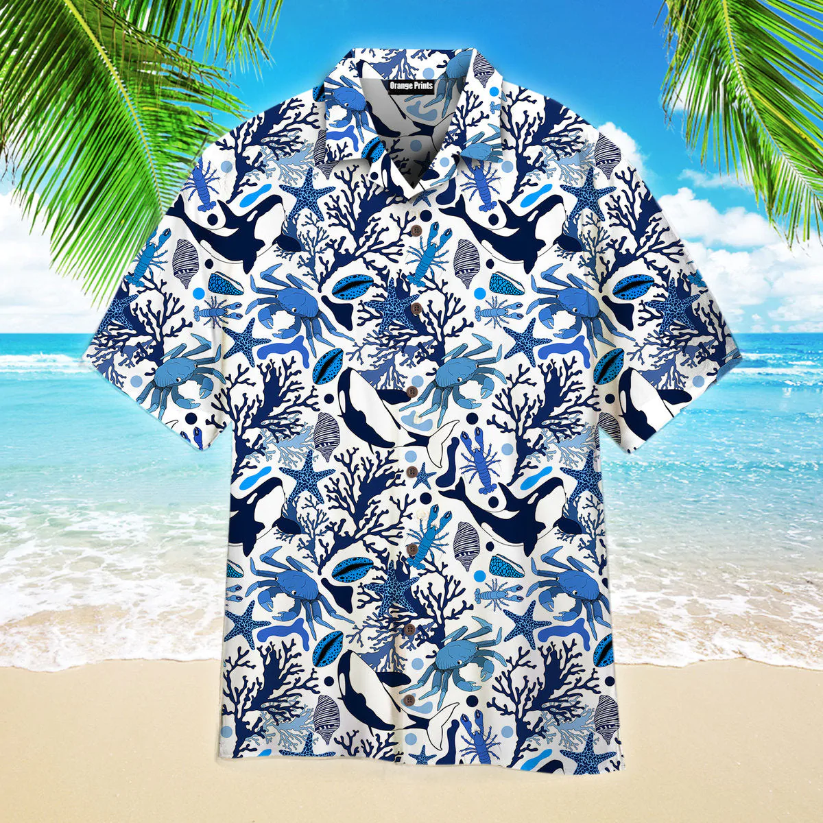 Life Of Ocean With Whales Crabs And Lobsters Pattern Hawaiian Shirt