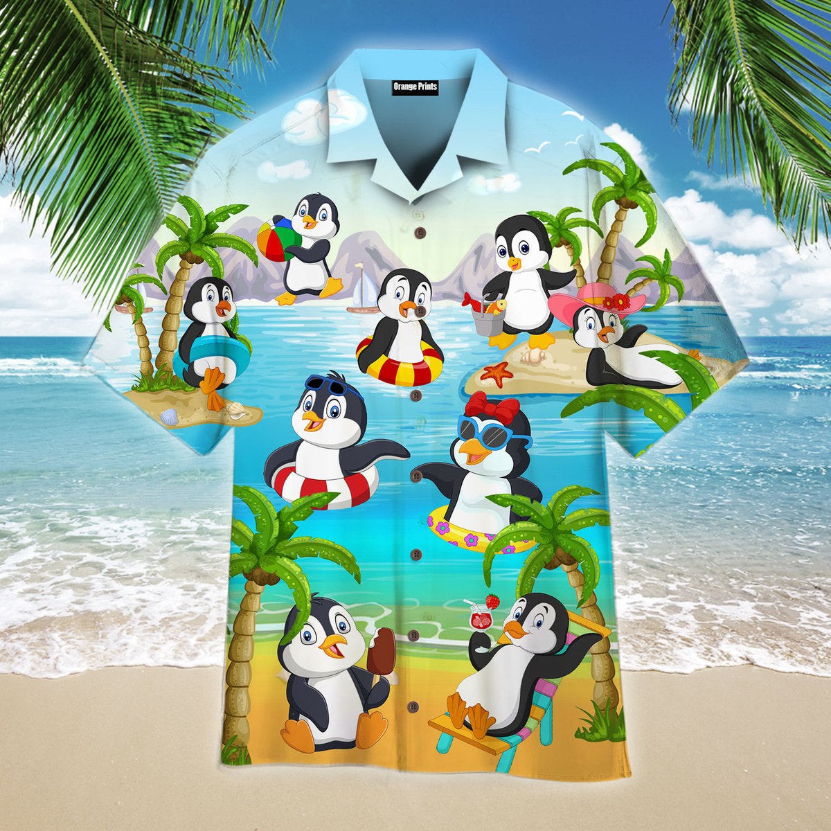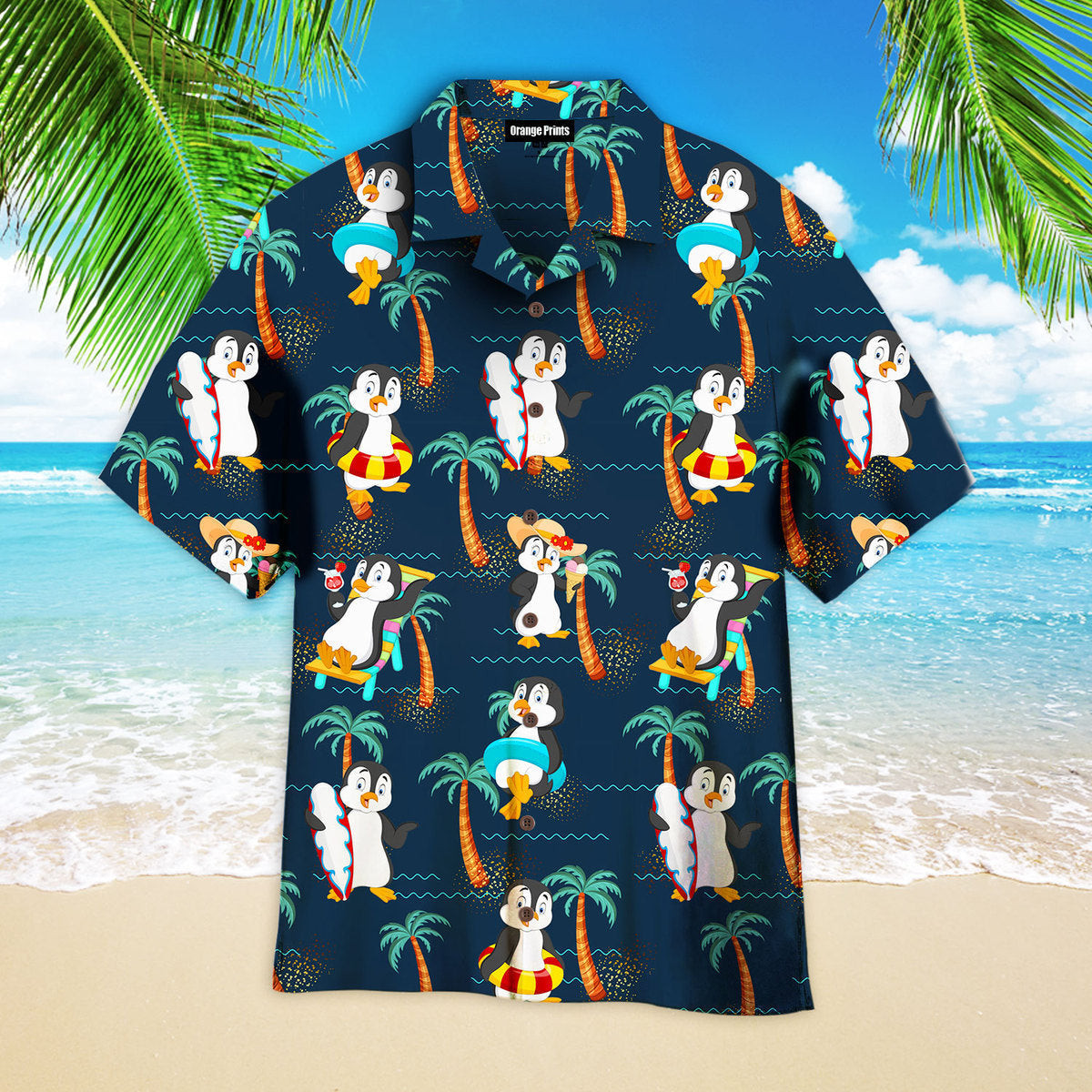 Penguin On The Beach Funny Hawaiian Shirt