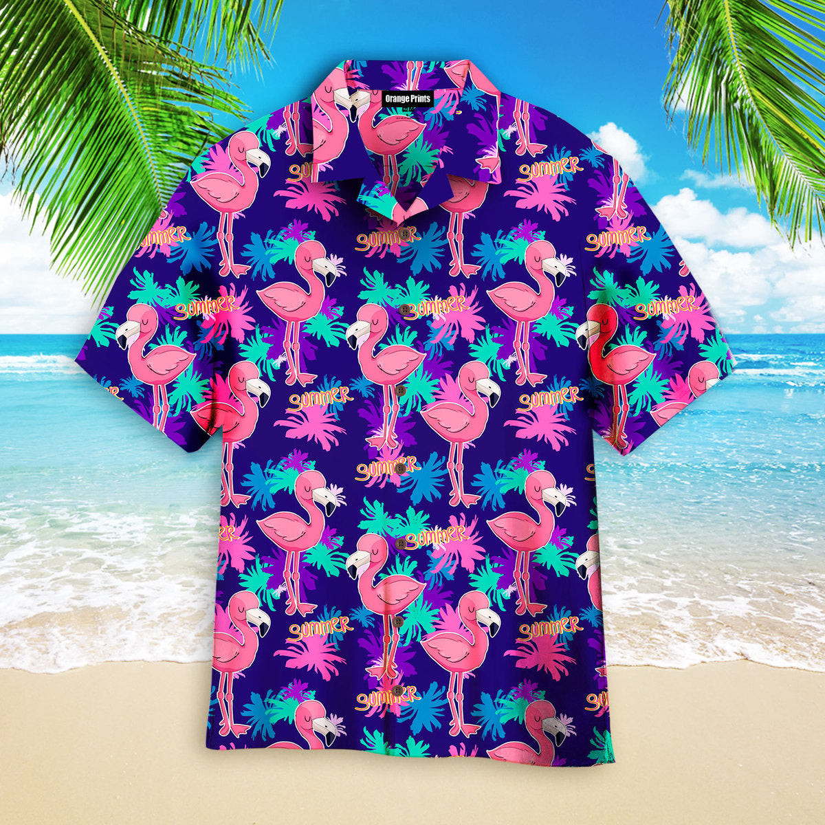 Pink Flamingo On The Beach Summer Hawaiian Shirt
