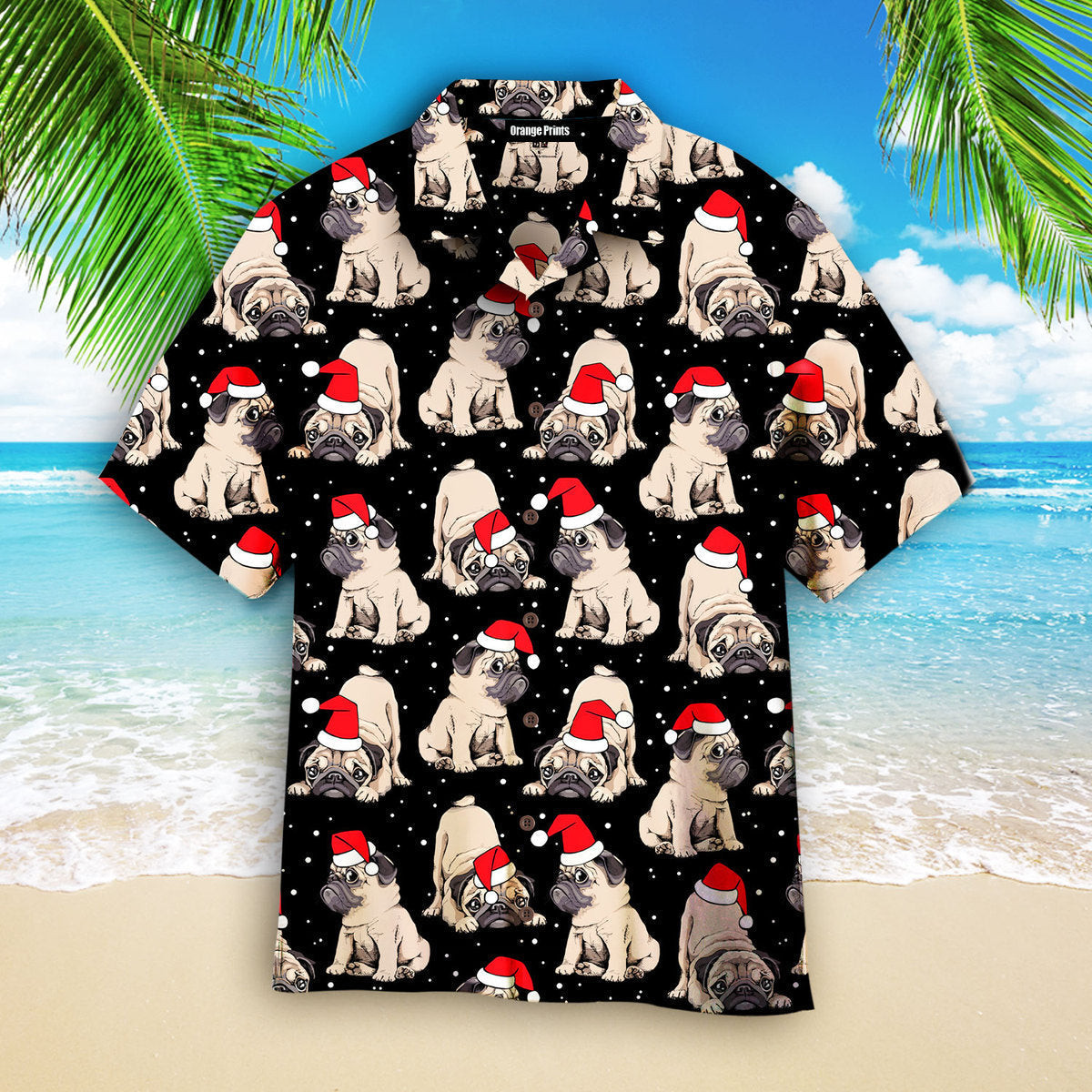 Puppy With Red Hat On Christmas In July Hawaiian Shirt