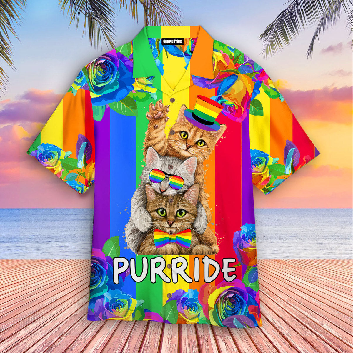 Purride Funny Cat Lovers LGBT Pride Awareness Hawaiian Shirt
