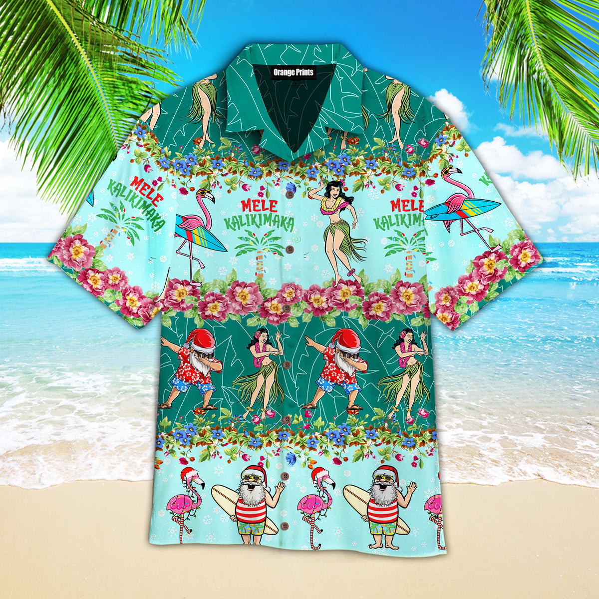 Santa Mele Kalikimaka Christmas Flamingo Hawaiian Shirt
