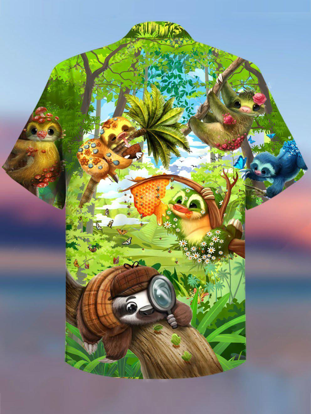 Sloth Hiking Team Night Landscpae Hawaiian Shirt