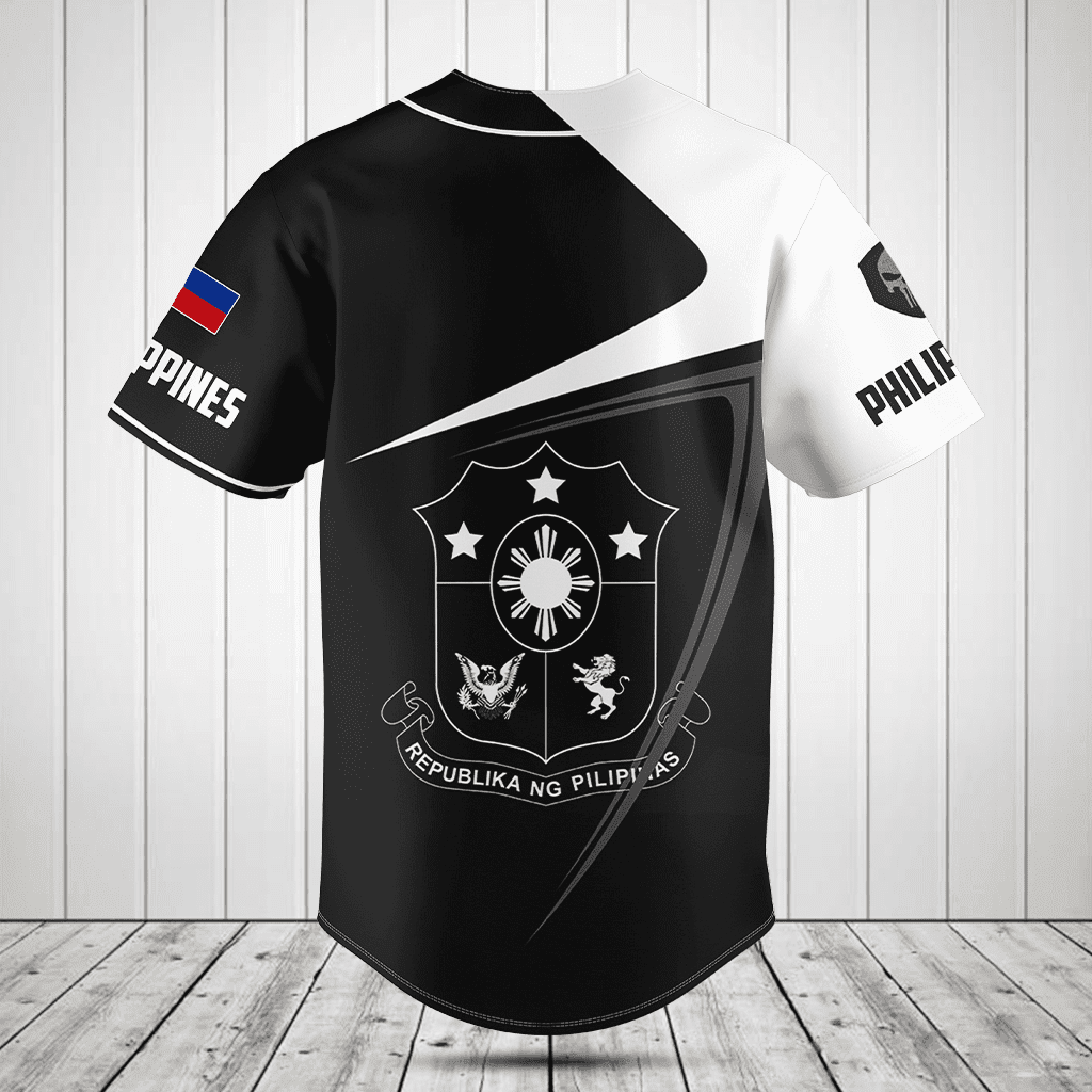 Personalized Philippines Symbol Black And White Skull Baseball Jersey