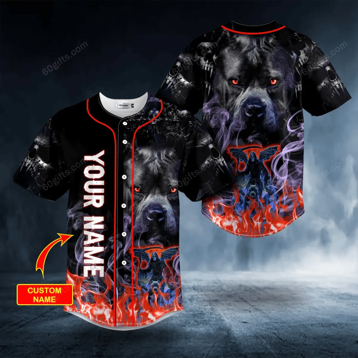 Personalized Pitbull Grim Reaper Fire Skull Baseball Jersey