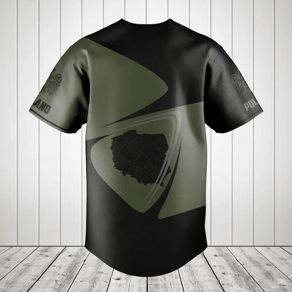 Personalized Poland Map Black And Olive Green Baseball Jersey