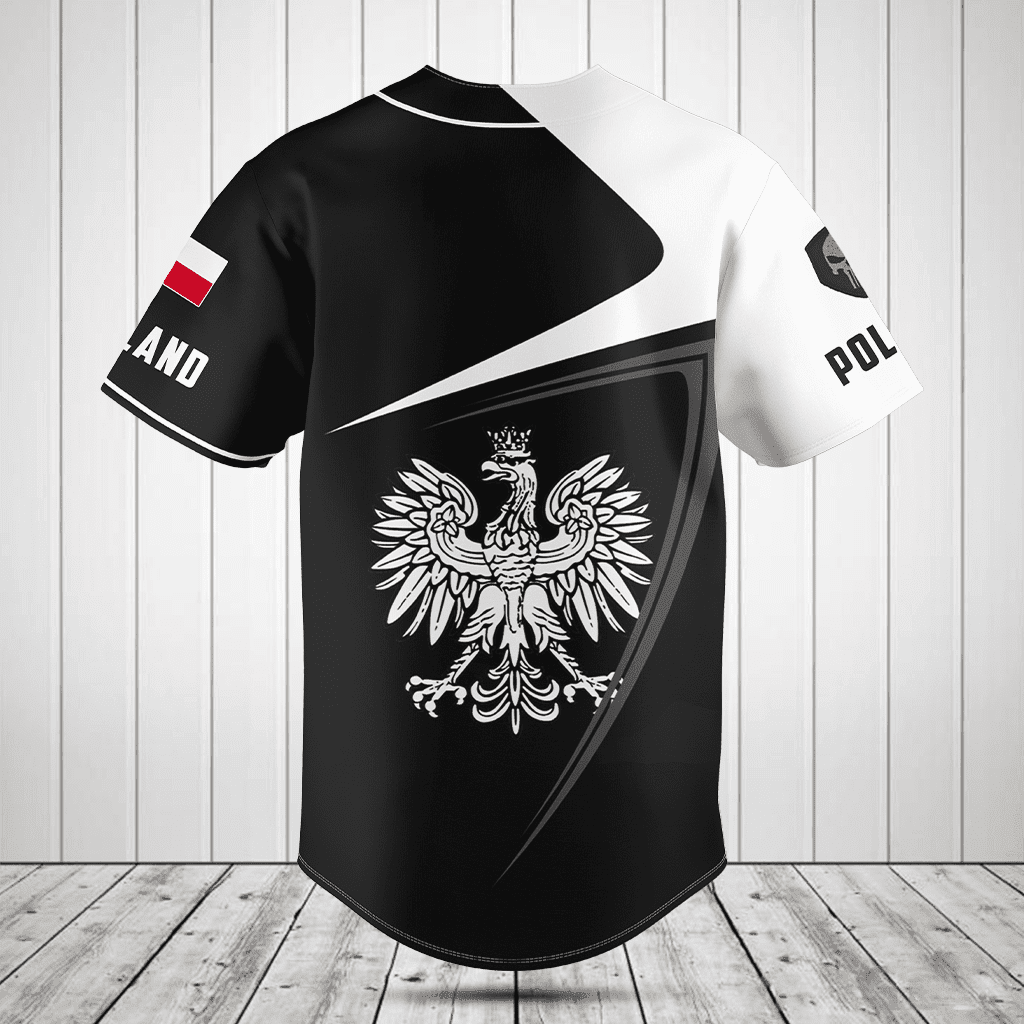 Personalized Poland Symbol Black And White Skull Baseball Jersey