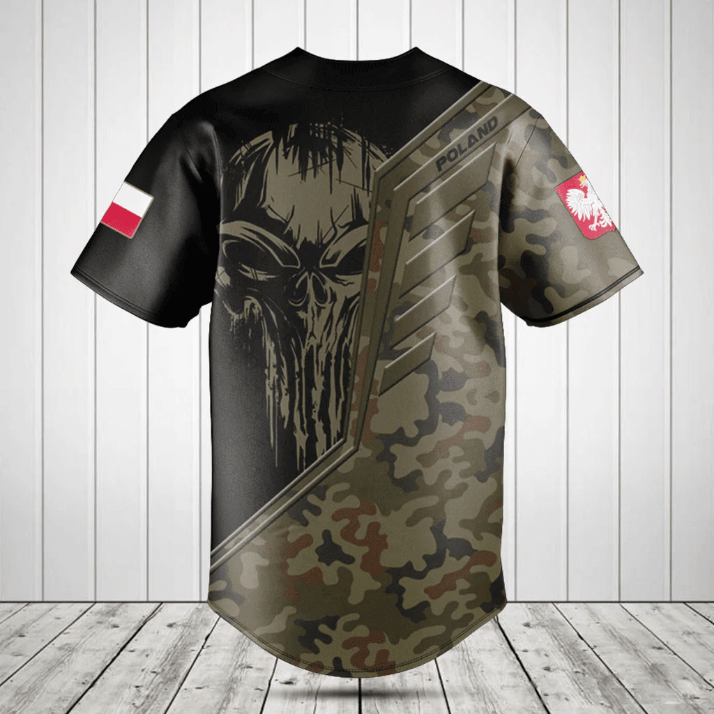 Personalized Poland Wing Skull Camouflage Baseball Jersey