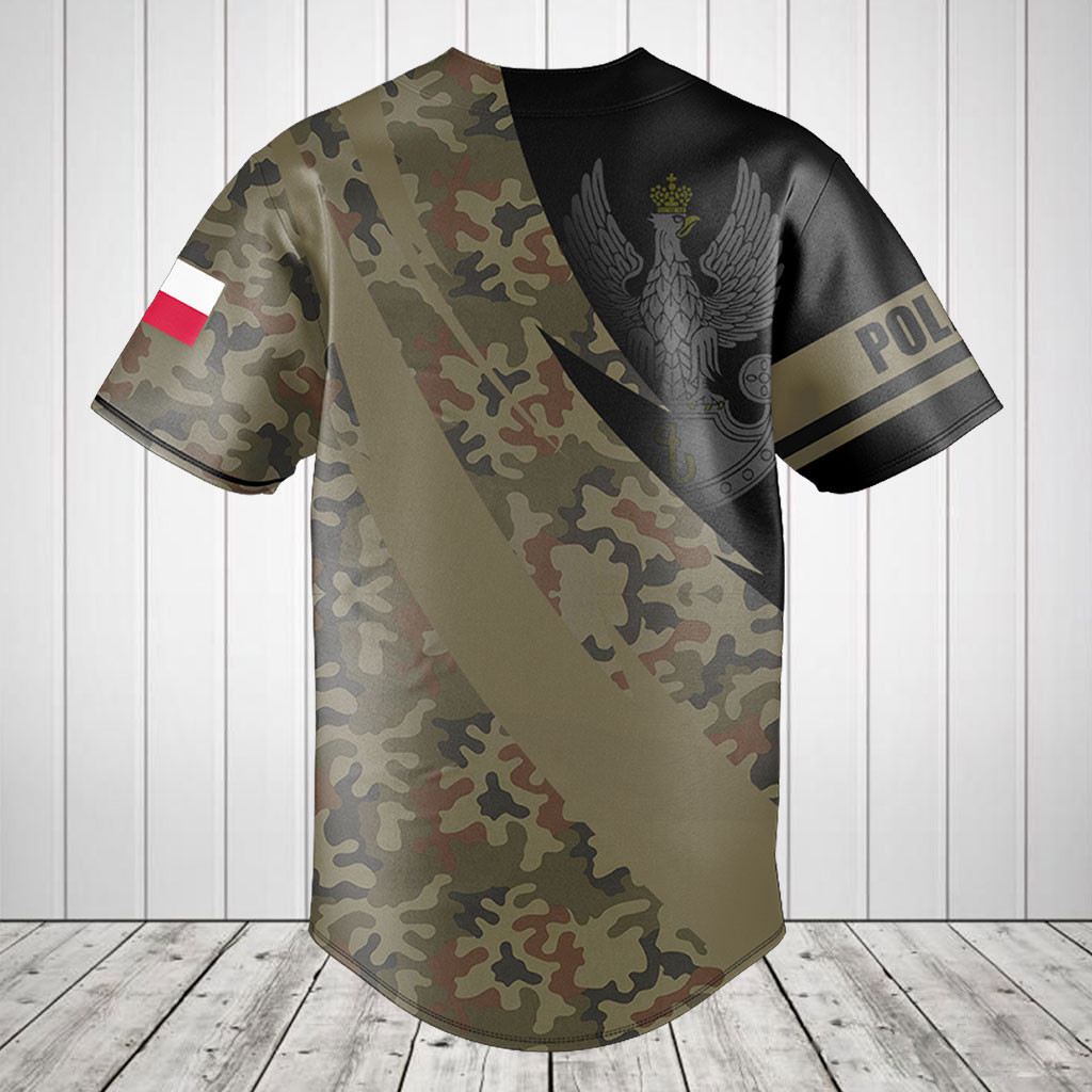 Personalized Polish Army Camo Fire Style Baseball Jersey