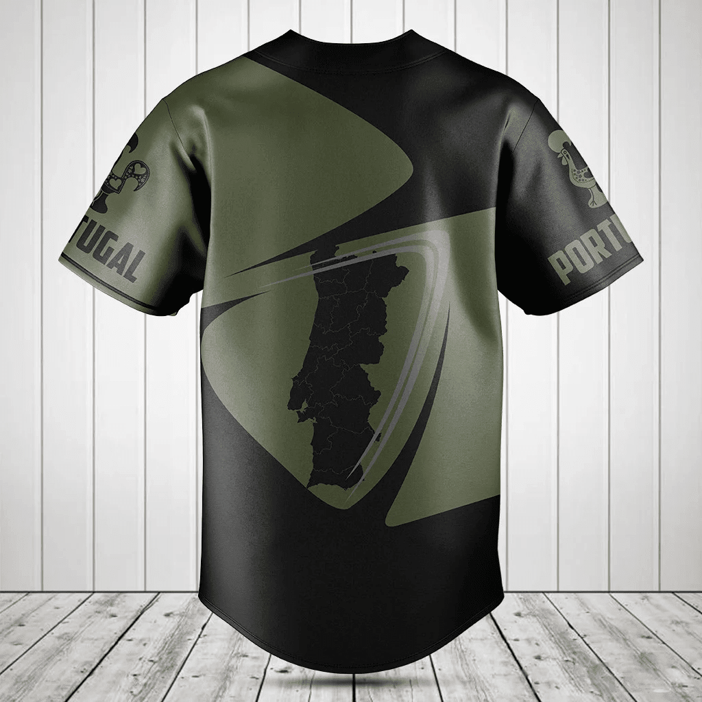 Personalized Portugal Map Black And Olive Green Baseball Jersey