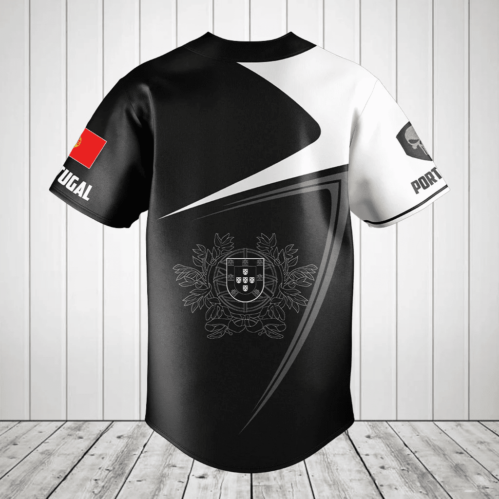 Personalized Portugal Symbol Black And White Skull Baseball Jersey