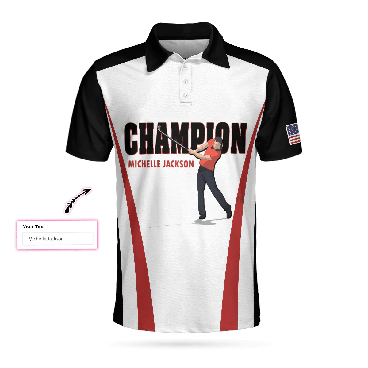 Personalized Red And White American Flag Personalized Polo Shirt, Champion Golfer Polo Shirt, Best Golf Shirt For Men