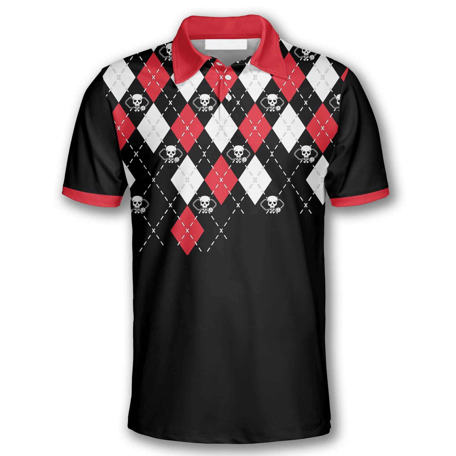 Personalized Skull Argyle Pattern Personalized Pickleball Polo Shirts for Men