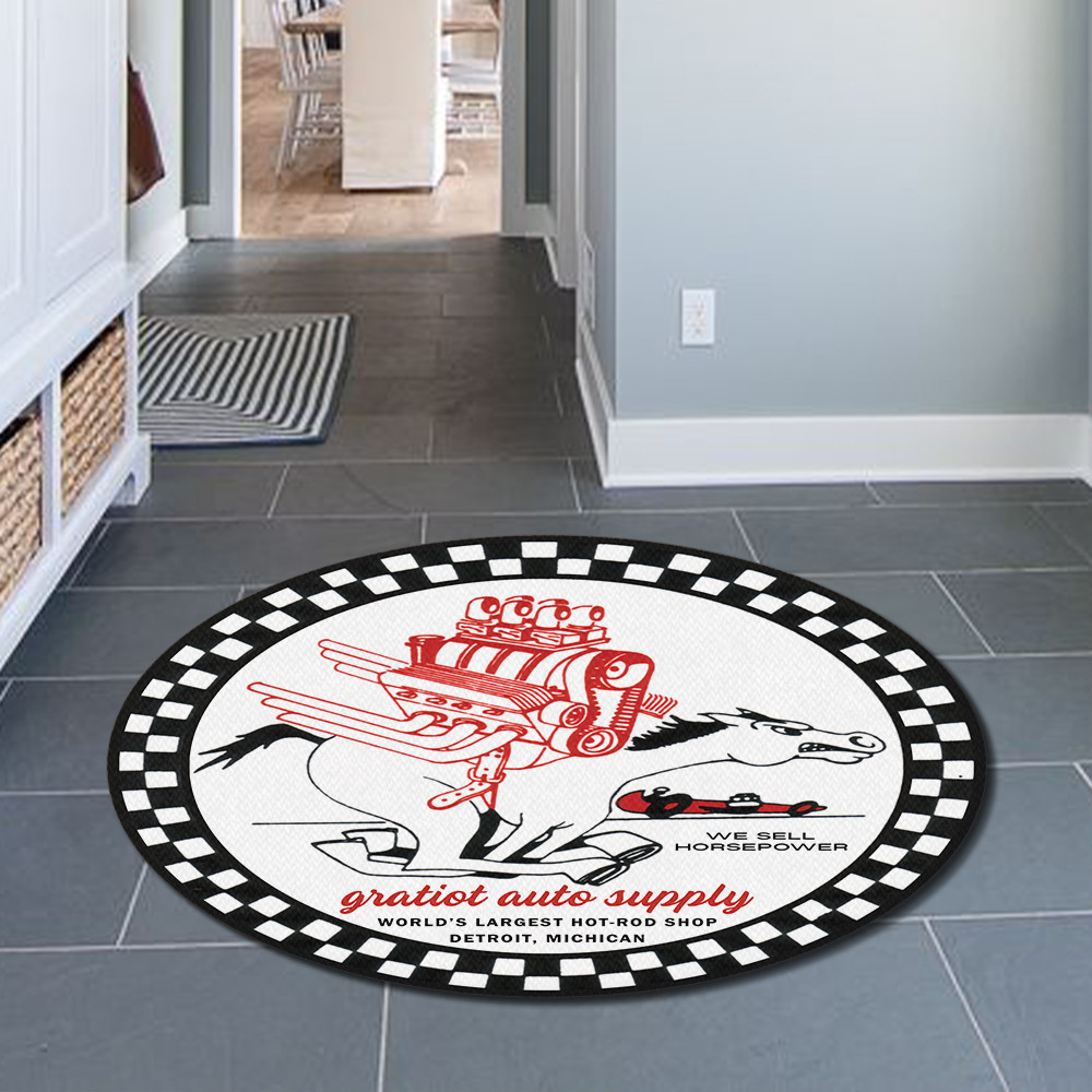 Gratiot Auto Supply Detriot Mi Vintage Hot Rat Rod Drag Racing Round Rug Carpet Bedroom Livingroom Home Decor
