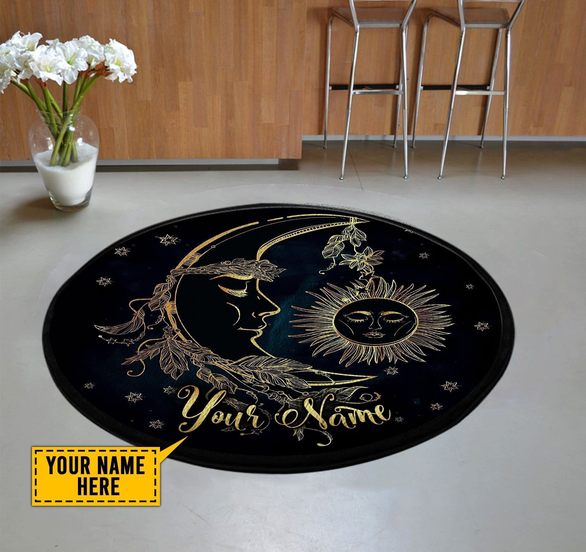 Hippie Sun & Moon Custom Name Round Rug Carpet Bedroom Livingroom Home Decor