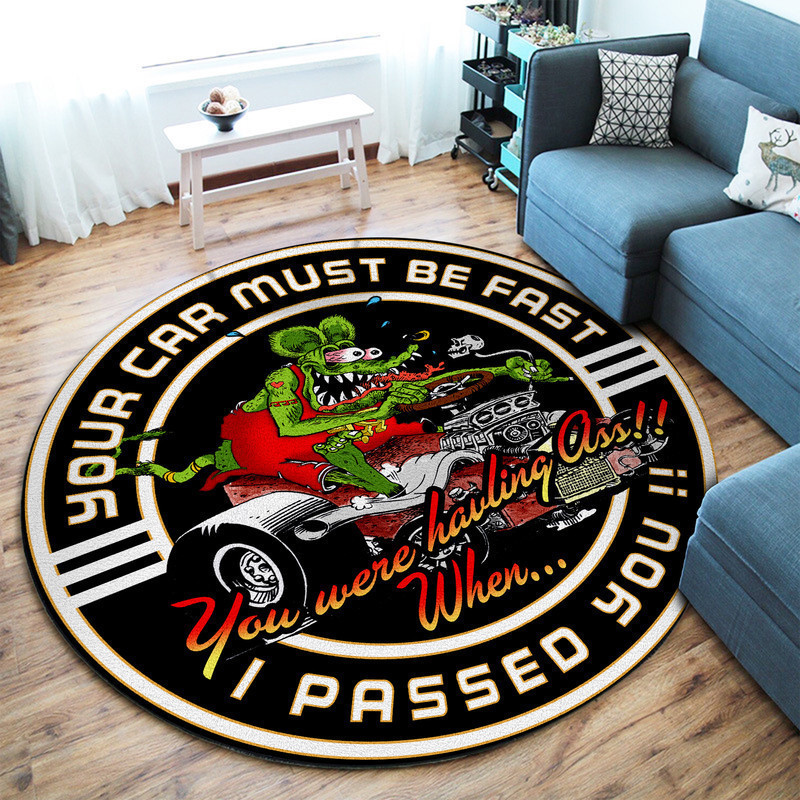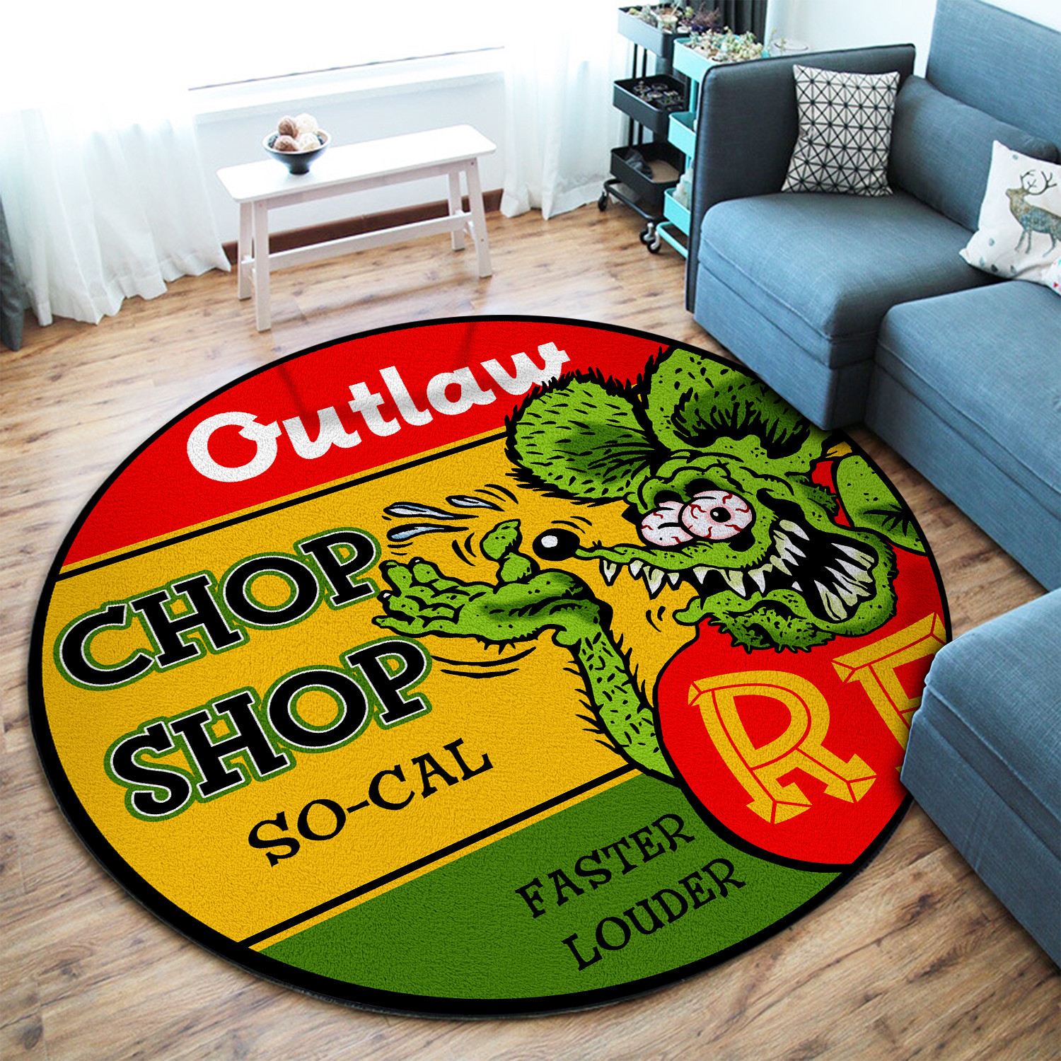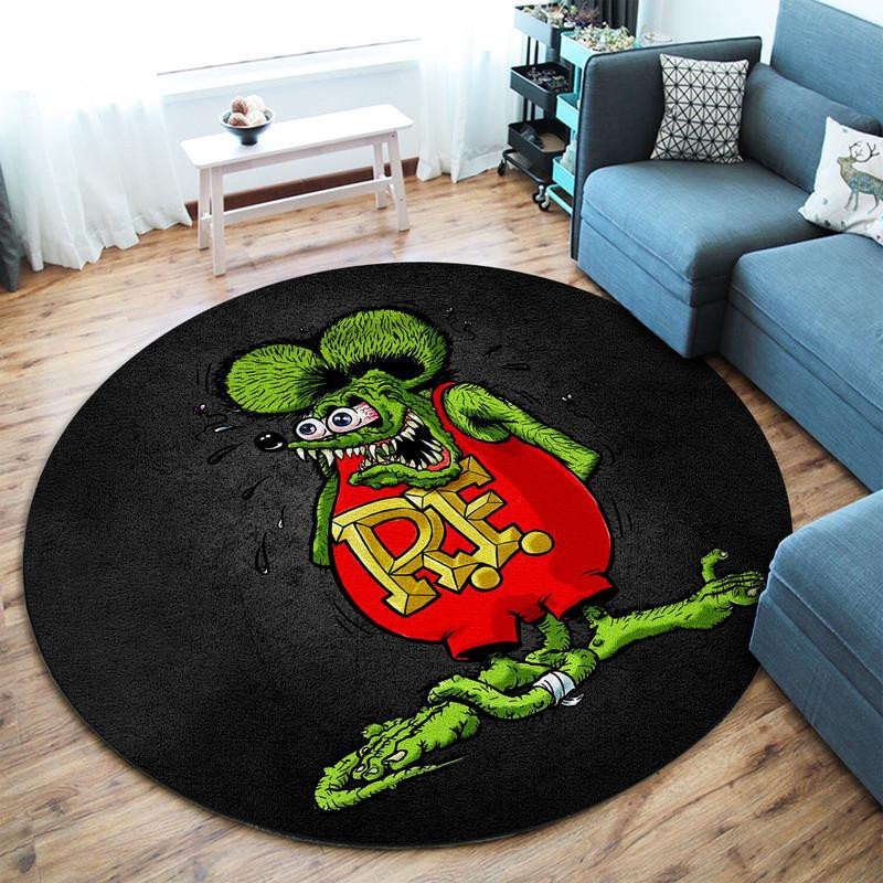 Hotrod Rat Fink Hot Rod Muscle Car Round Rug Carpet Bedroom Livingroom Home Decor