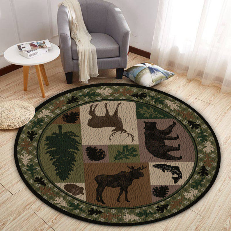 Hunting Deer Rustic Round Rug Carpet Bedroom Livingroom Home Decor