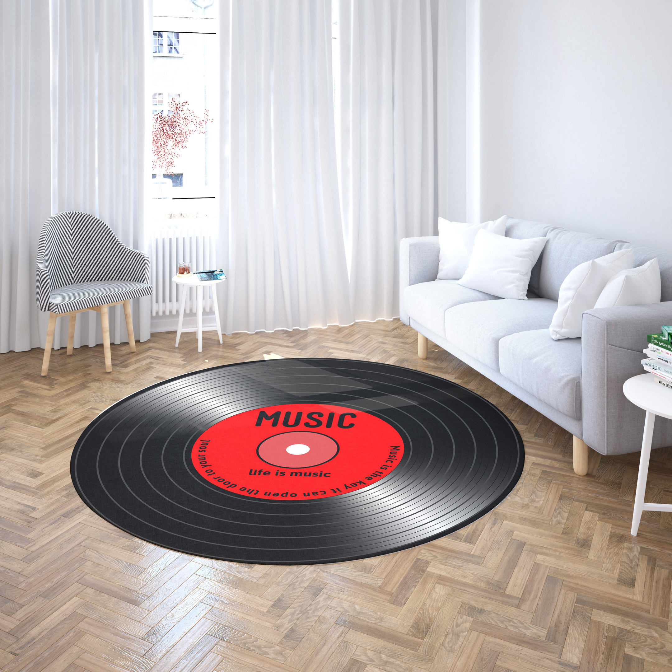 Life Is Music Record Red Black Music Round Rug Carpet Bedroom Livingroom Home Decor