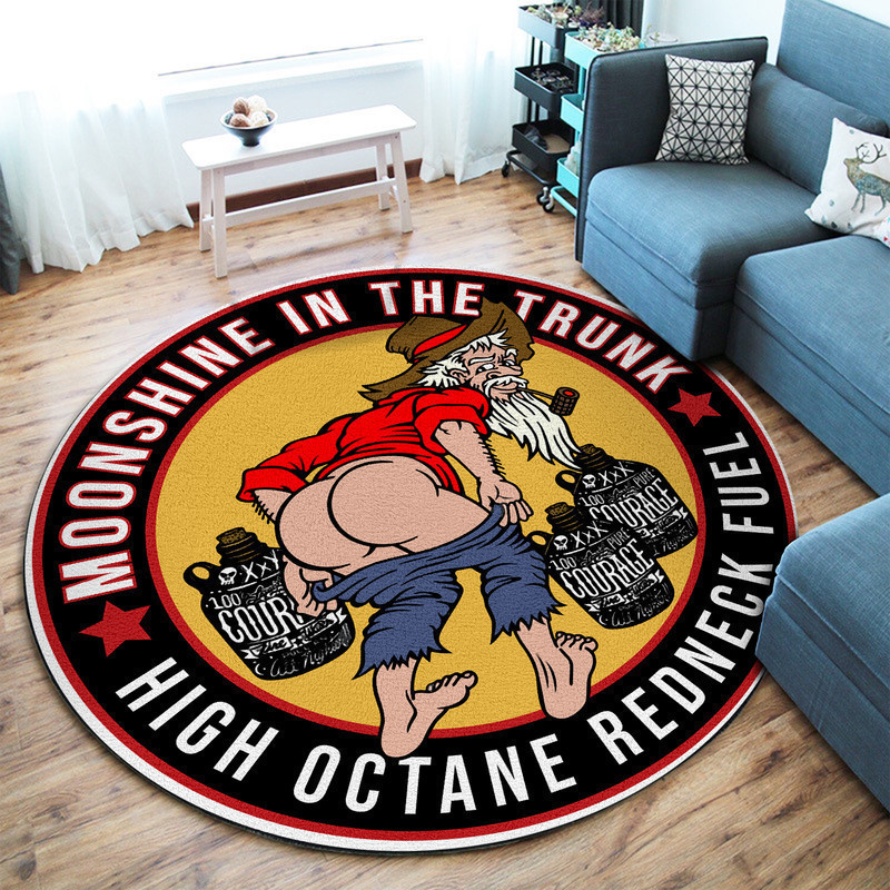 Moonshine In The Trunk Hot Rod Round Rug Carpet Bedroom Livingroom Home Decor