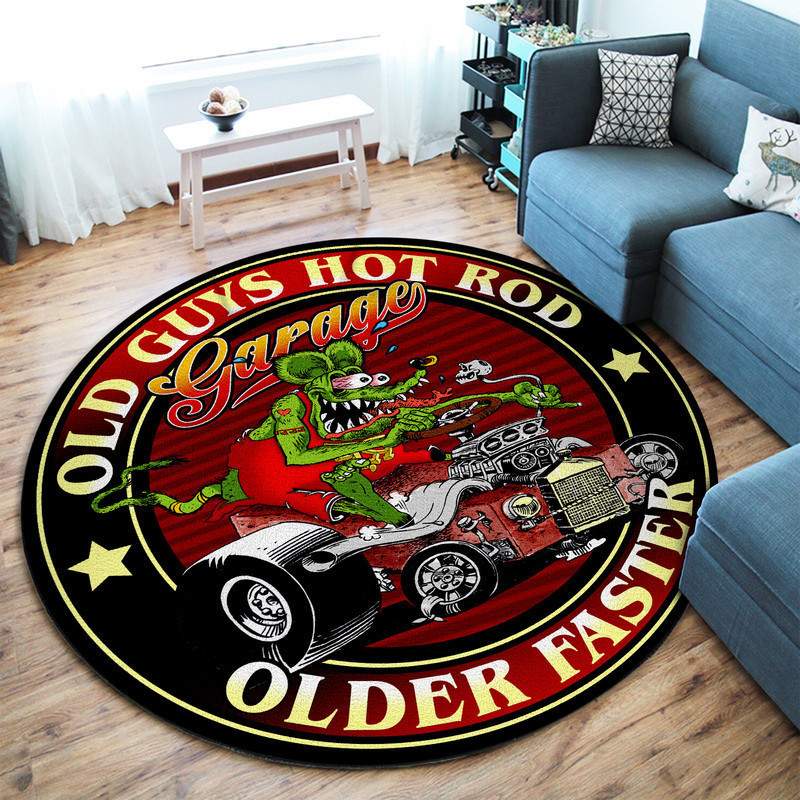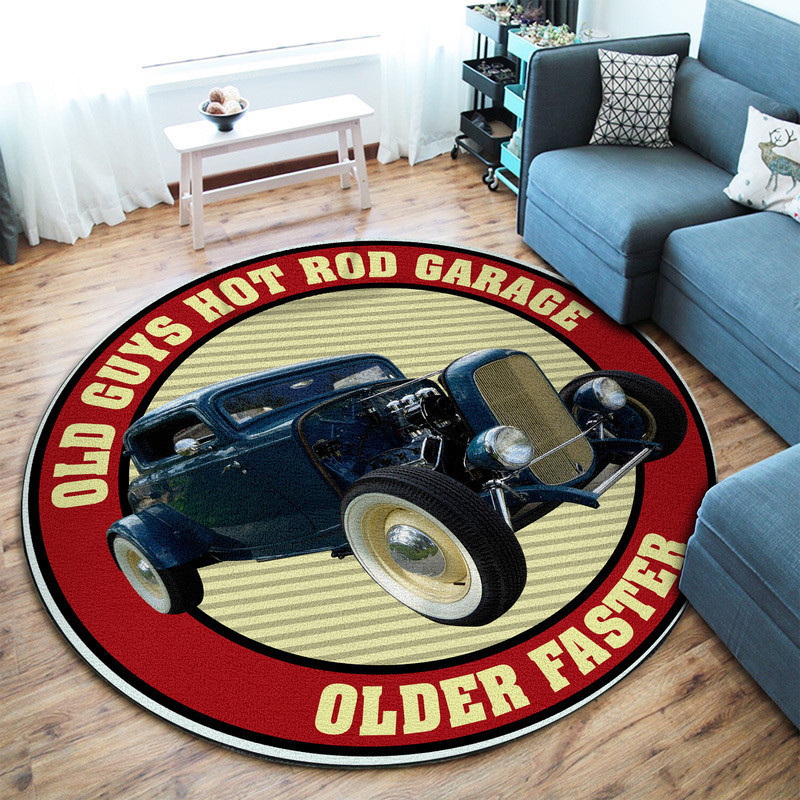 Old Guys Garage Hot Rod Round Rug Carpet Bedroom Livingroom Home Decor