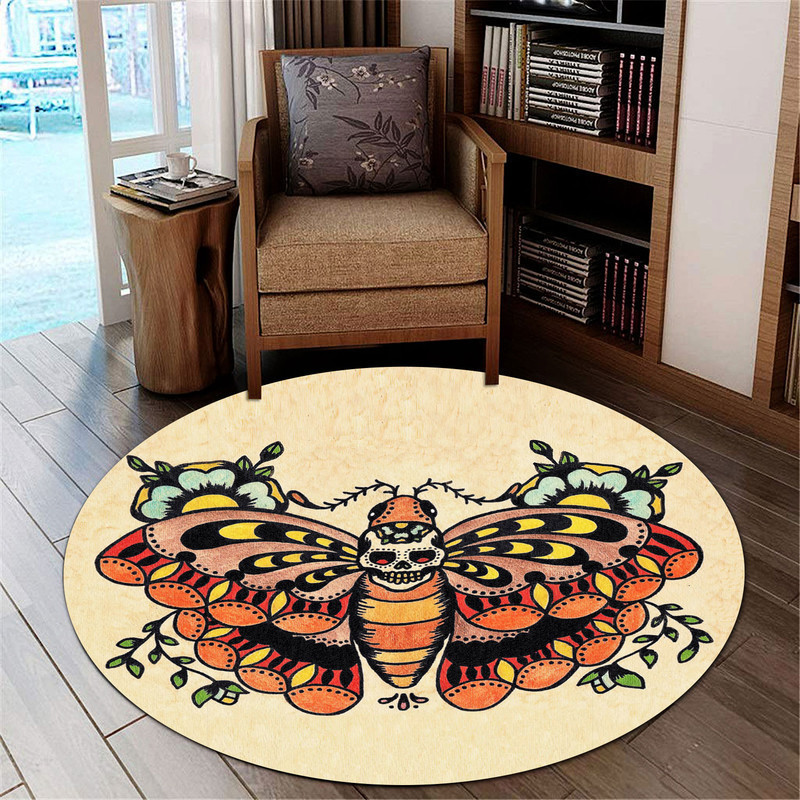 Old School Tattoo Death Moth Round Rug Carpet Bedroom Livingroom Home Decor