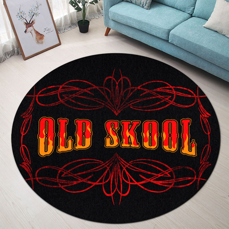Old Skool Hot Rod Pinstripe Round Rug Carpet Bedroom Livingroom Home Decor