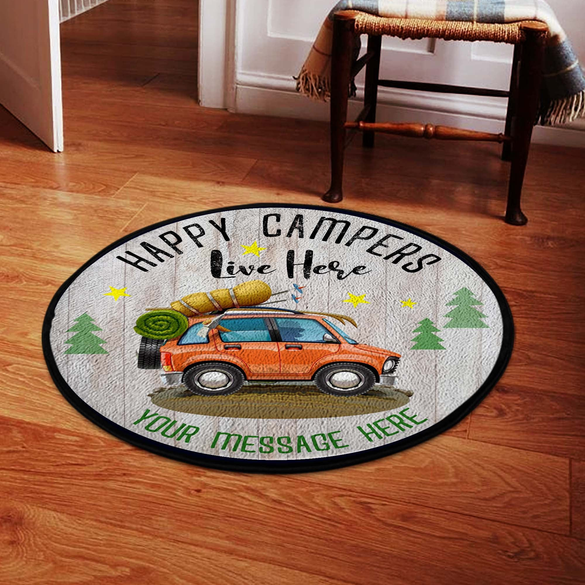 Personalized Happy Campers Live Here Round Rug Carpet Bedroom Livingroom Home Decor