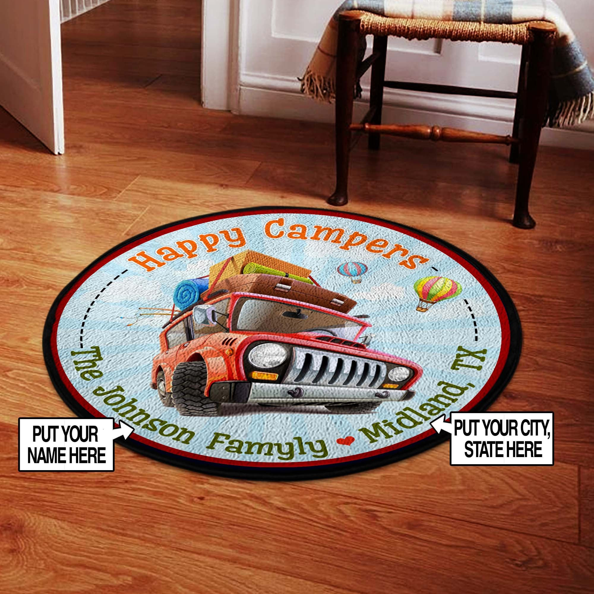 Personalized Happy Campers Round Rug Carpet Bedroom Livingroom Home Decor