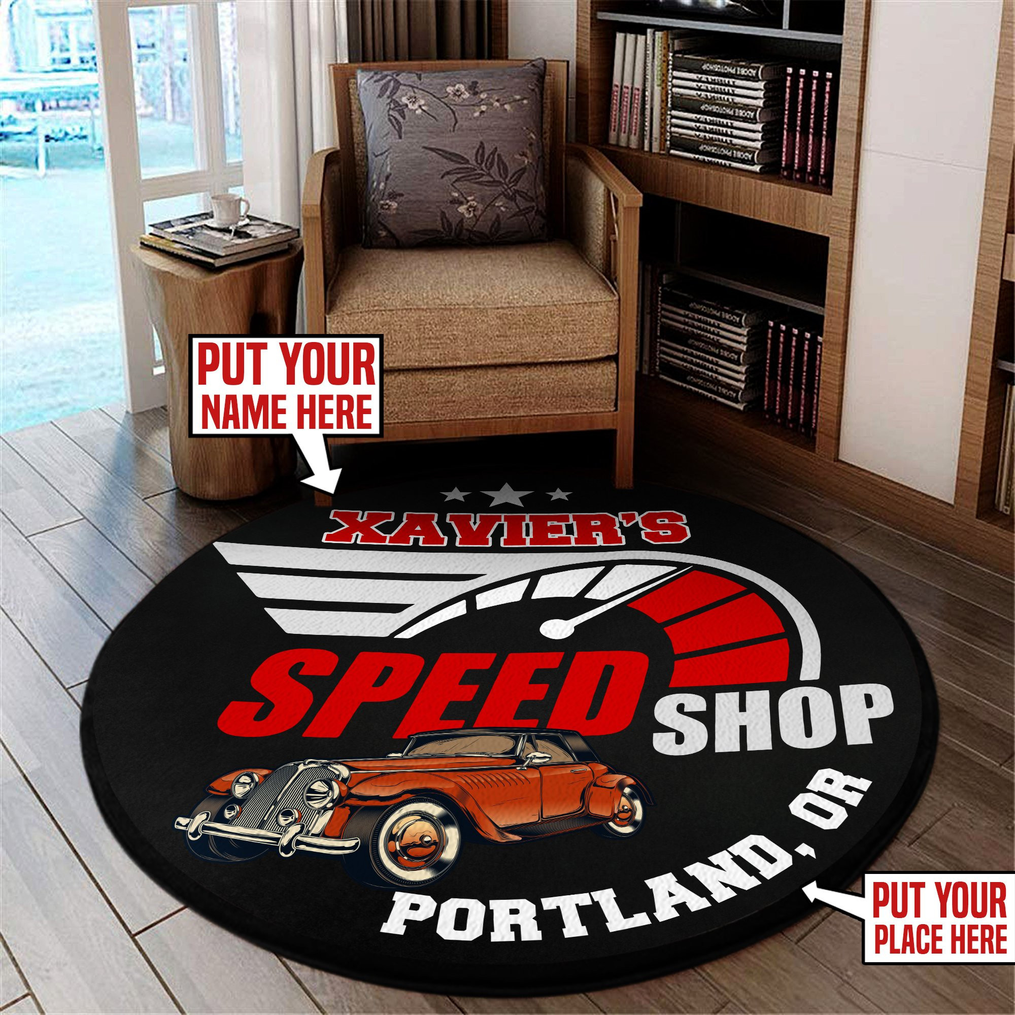 Personalized Speed Shop Round Rug Carpet Bedroom Livingroom Home Decor