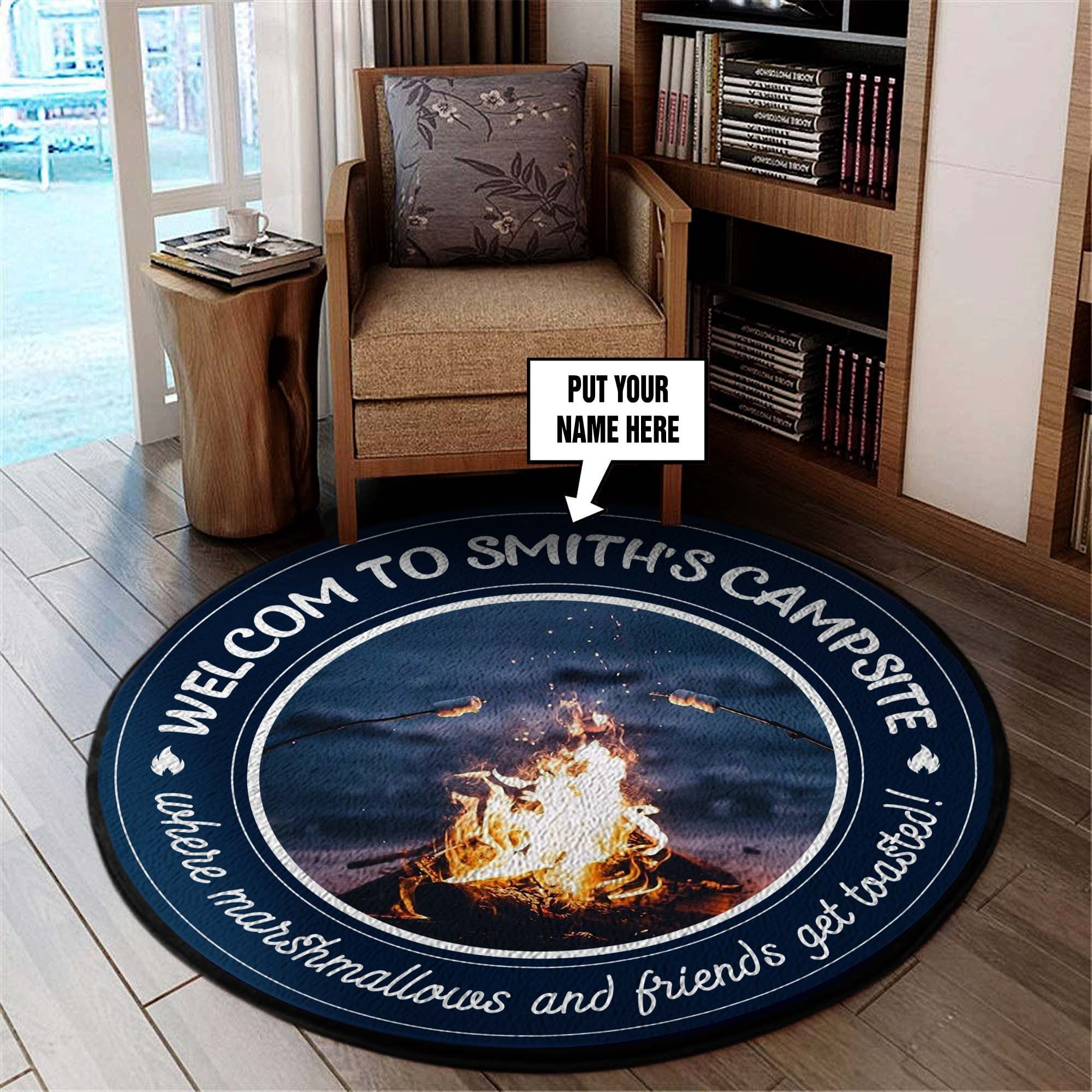 Personalized Welcome To The Campsite Round Rug Carpet Bedroom Livingroom Home Decor