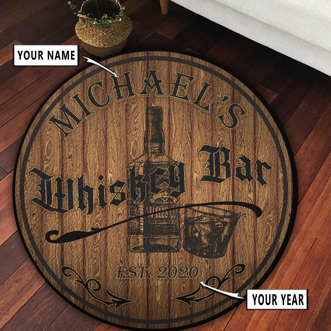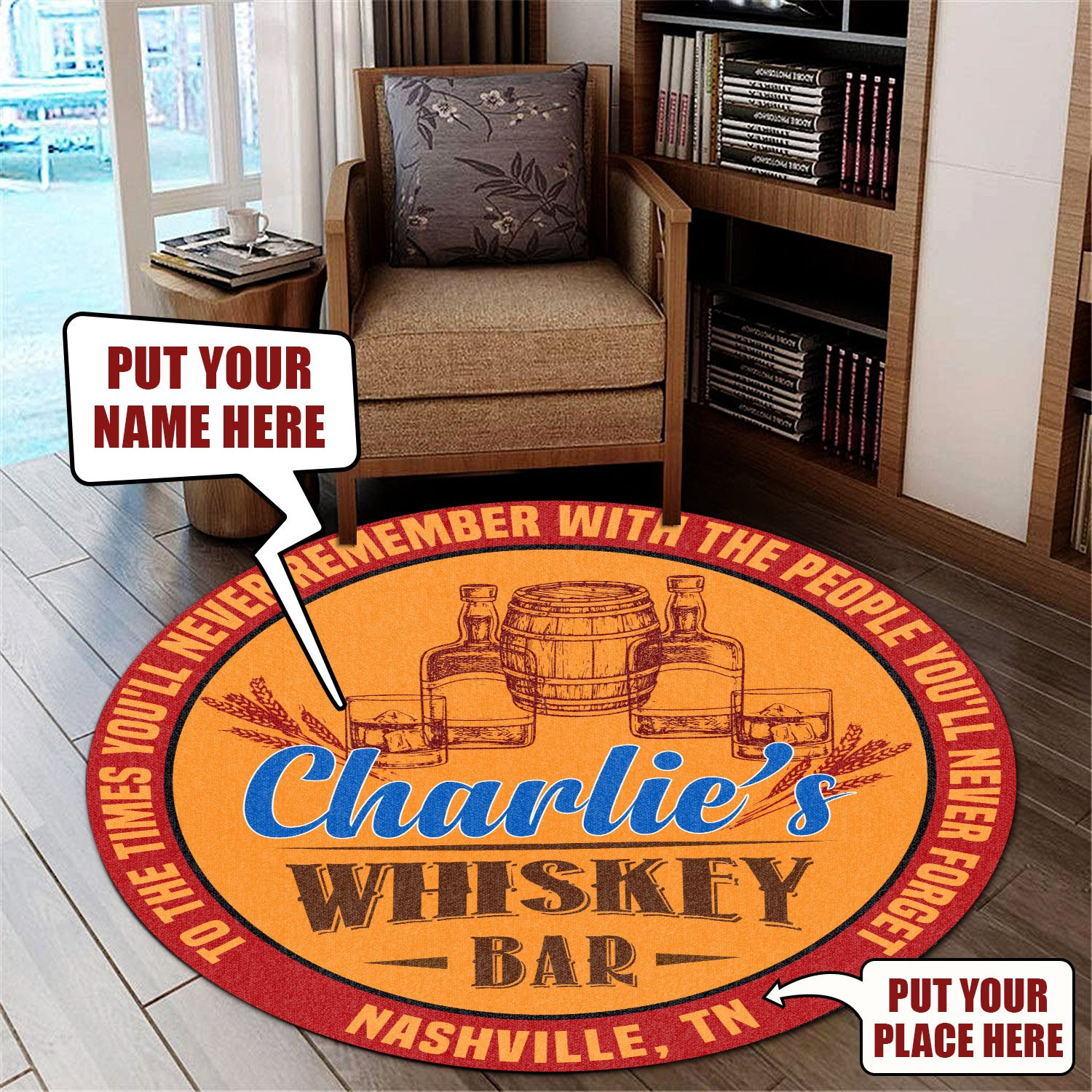 Personalized Whiskey Bar Round Rug Carpet Bedroom Livingroom Home Decor