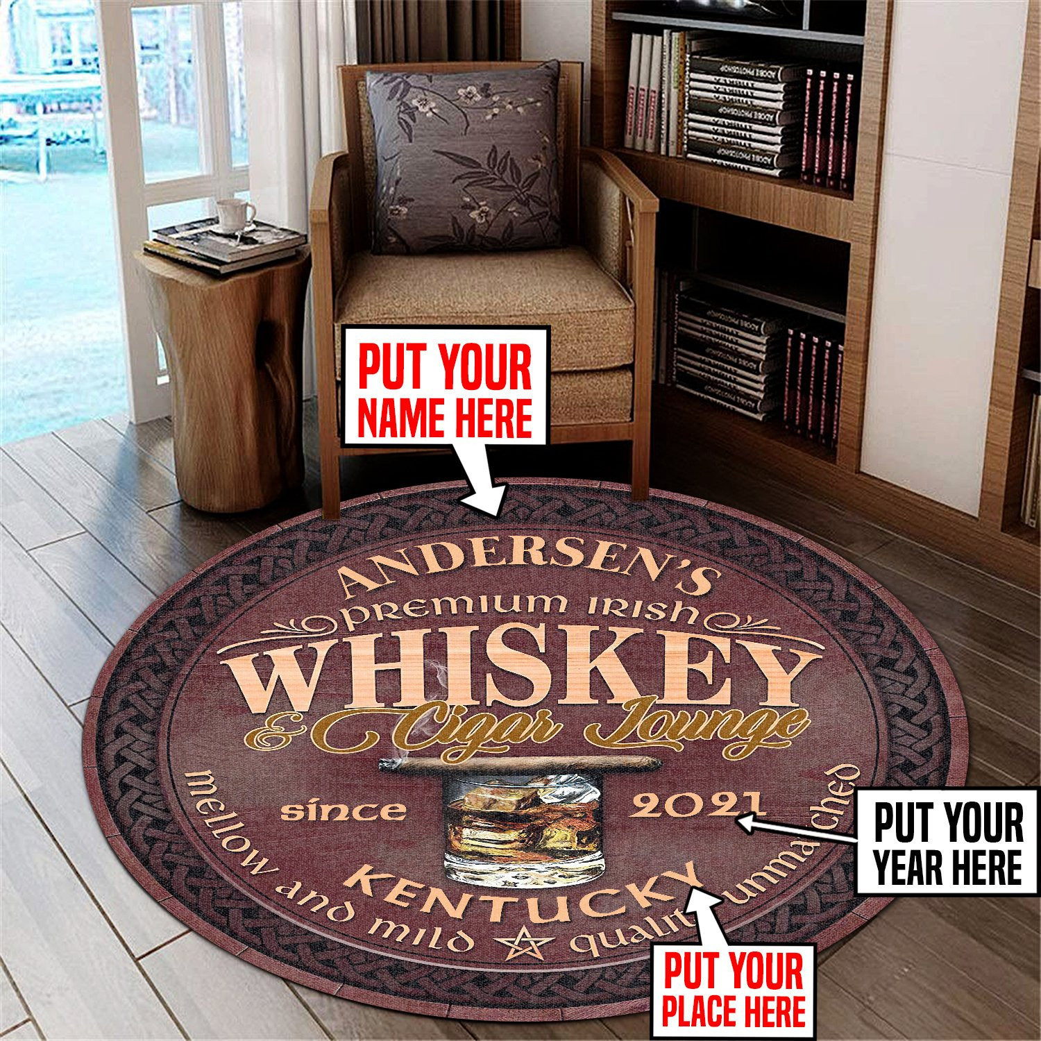 Personalized Whiskey Cigar Lounge Round Rug Carpet Bedroom Livingroom Home Decor