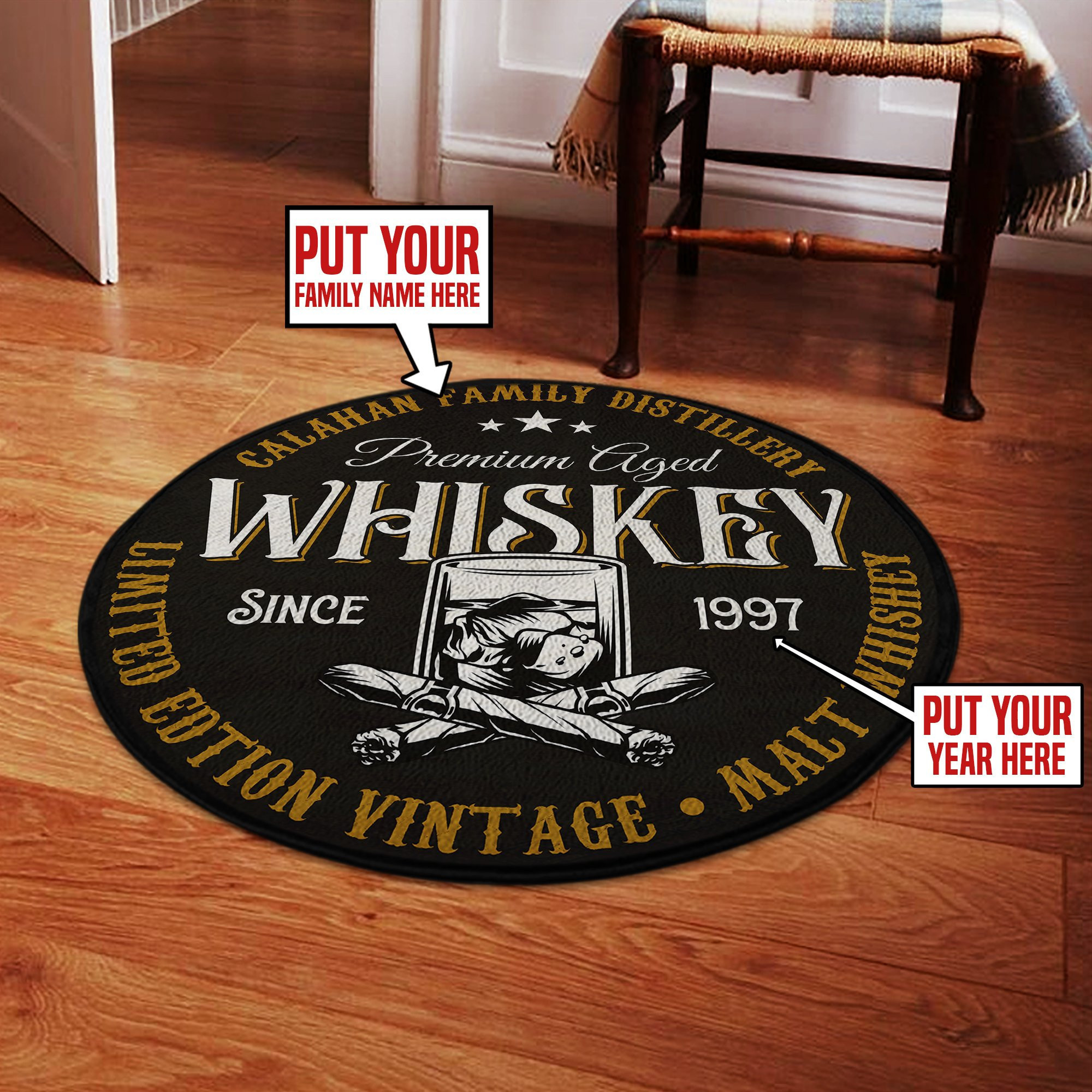 Personalized Whiskey Round Rug Carpet Bedroom Livingroom Home Decor