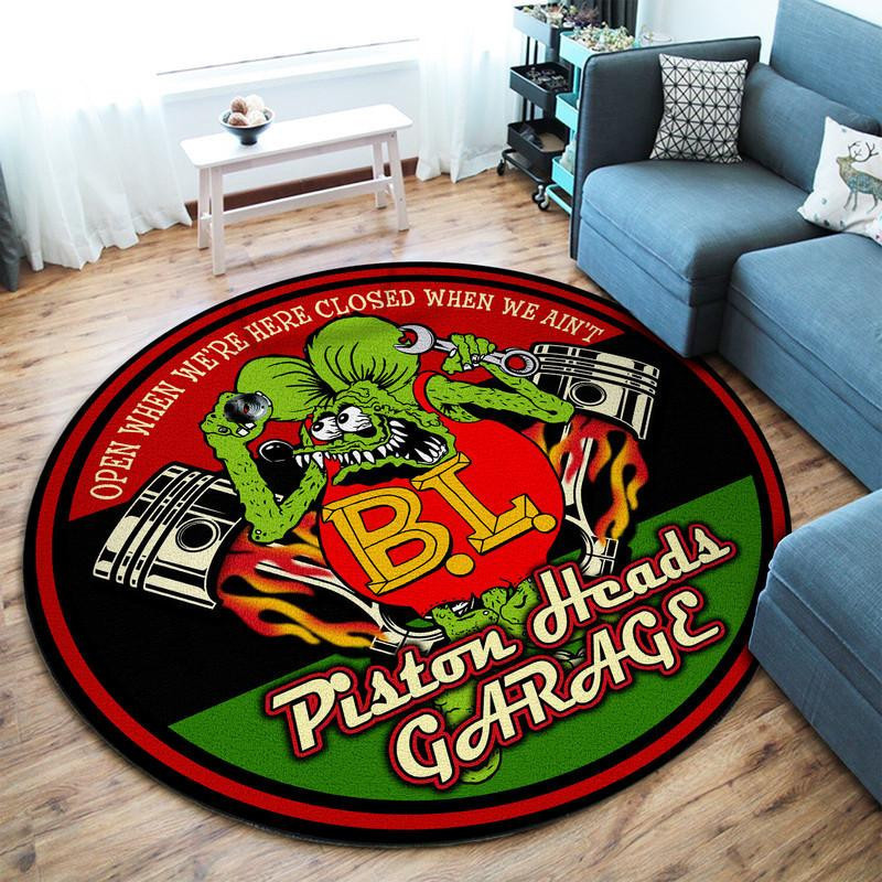 Piston Heads Garage Hot Rod Round Rug Carpet Bedroom Livingroom Home Decor