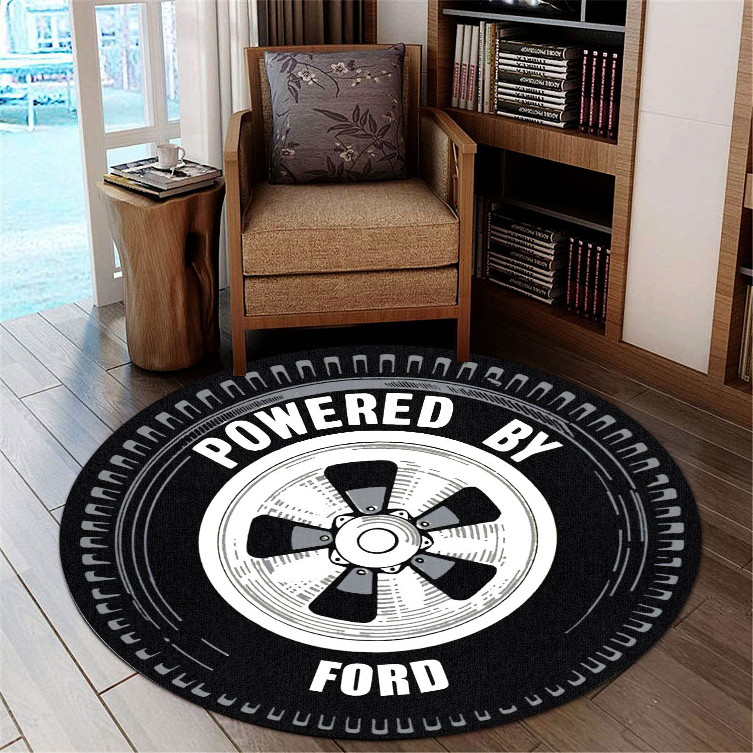 Power By Ford Wheel Vintage Hot Rat Rod Drag Racing Round Rug Carpet Bedroom Livingroom Home Decor