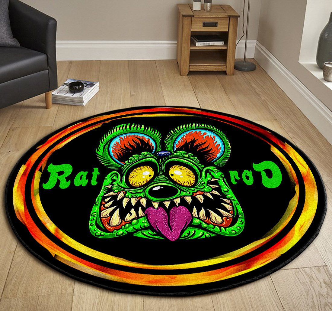Rat Rod Rat Fink Round Rug Carpet Bedroom Livingroom Home Decor