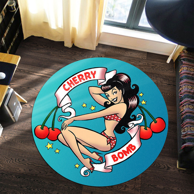 Cherry Bomb Hot Rod Round Rug Carpet Bedroom Livingroom Home Decor