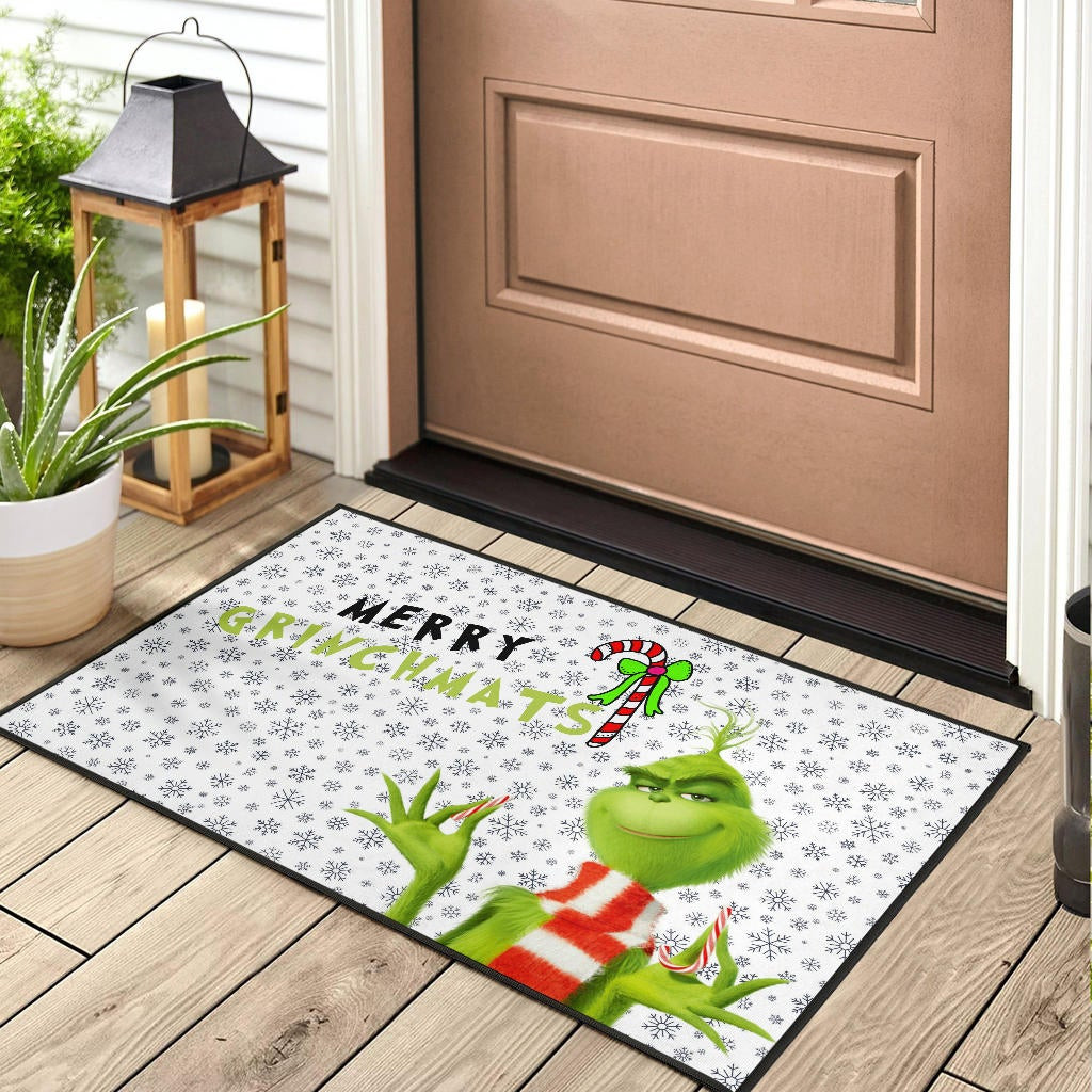 Christmas Rubber Doormat | Merry Grinchmats Grinch Smiling Candy Cane Gift Rubber Doormat Home Decor NA100405