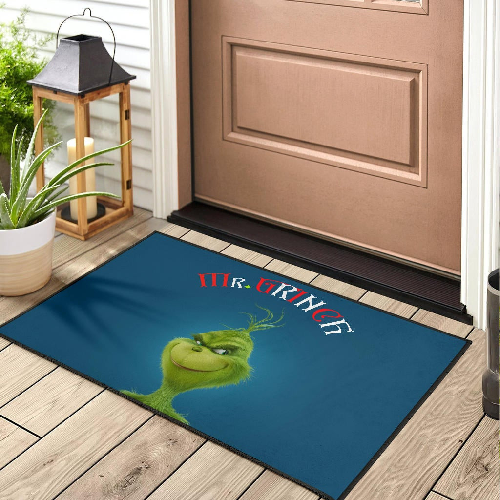 Christmas Rubber Doormat | Mr. Grinch Smiling Thinking Face Rubber Doormat Home Decor