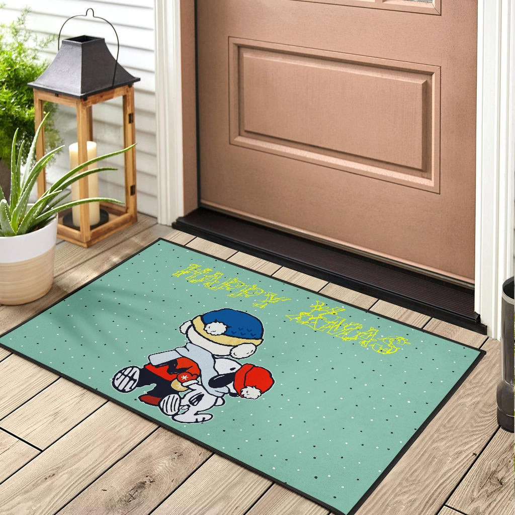 Christmas Rubber Doormat | Snoopy And Charlie Brown Walking Snowing Rubber Doormat Home Decor