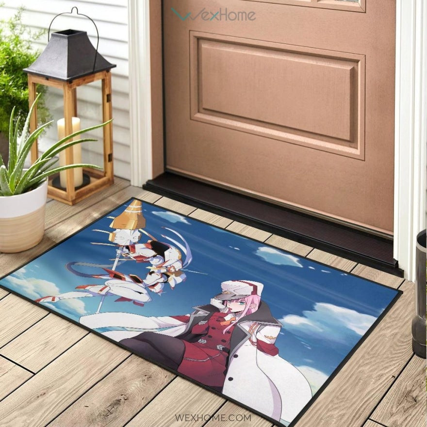 Darling In The Franxx Anime Captain Zero Two With Darling Strelitzia Ready For Fight Rubber Doormat Hom Decor